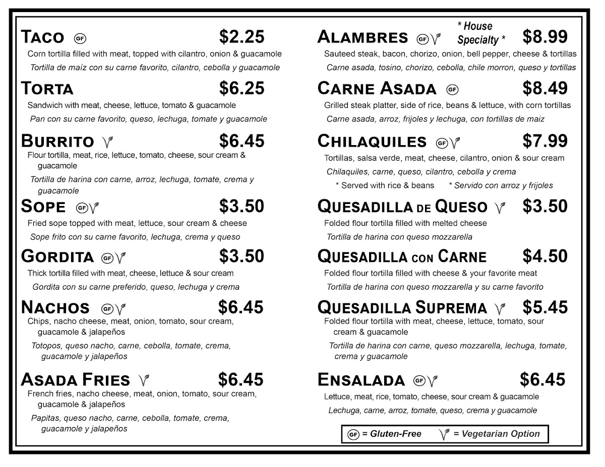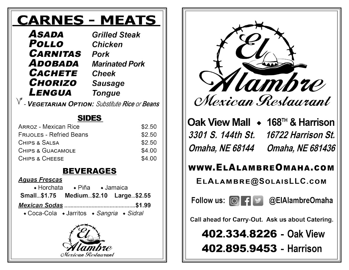 Introducing the Menu at El Alambre Mexican Food - Millard